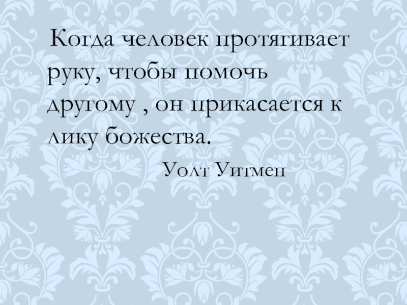 Когда человек протягивает руку, чтобы помочь другому , он прикасается к лику божества.