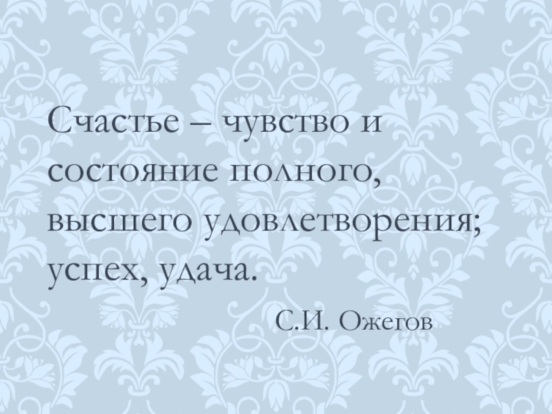 Слайд 2Счастье – чувство и состояние полного, высшего удовлетворения; успех, удача.