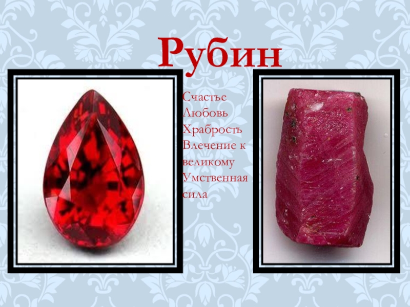 РубинСчастье ЛюбовьХрабростьВлечение квеликомуУмственнаясила
