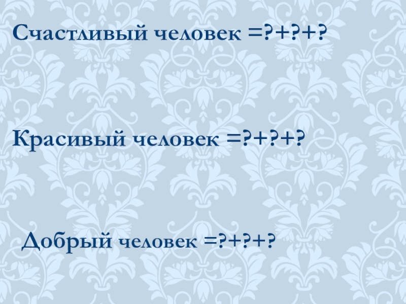 Красивый человек =?+?+?Счастливый человек =?+?+?Добрый человек =?+?+?