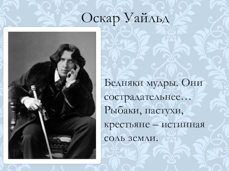 Оскар УайльдБедняки мудры. Они сострадательнее… Рыбаки, пастухи, крестьяне – истинная соль земли.