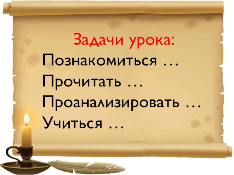 Задачи урока:Познакомиться …Прочитать …Проанализировать …Учиться …