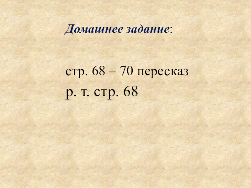 Домашнее задание:стр. 68 – 70 пересказр. т. стр. 68