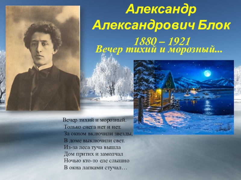 Александр Александрович Блок 1880 – 1921 Вечер тихий и морозный...Вечер тихий и морозный. Только снега нет и