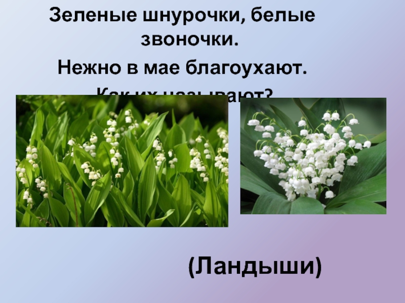 (Ландыши)Зеленые шнурочки, белые звоночки. Нежно в мае благоухают. Как их называют?