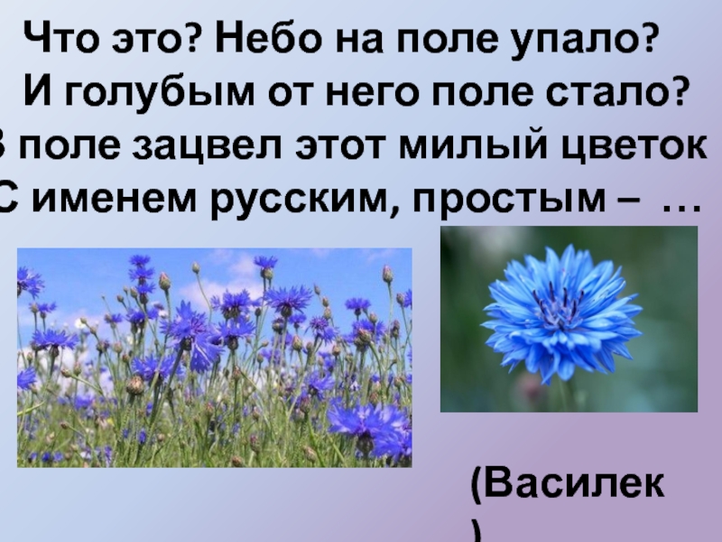 (Василек)Что это? Небо на поле упало?    И голубым от него поле стало?