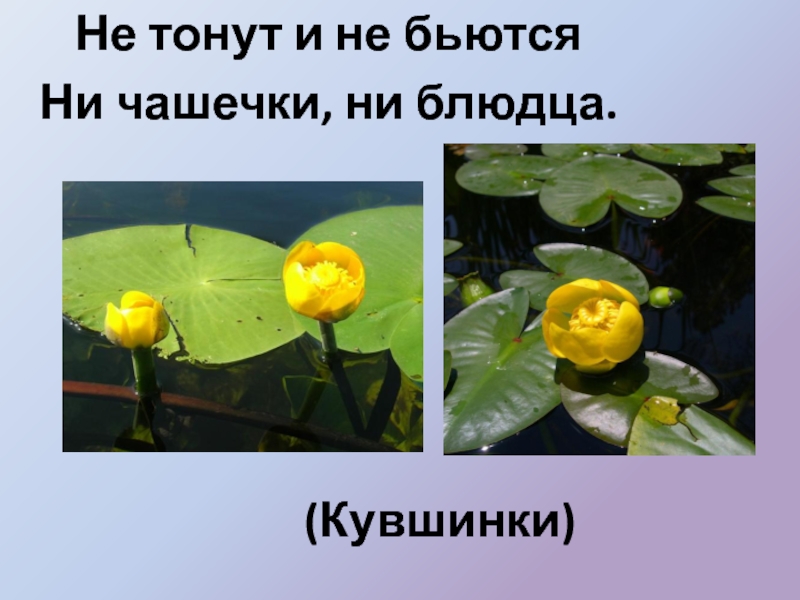 (Кувшинки)Не тонут и не бьются Ни чашечки, ни блюдца.