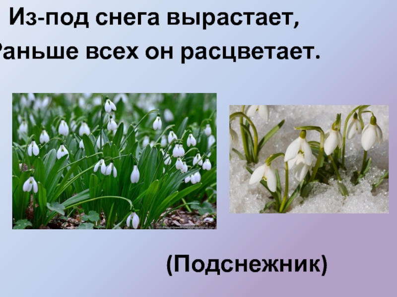 (Подснежник)Из-под снега вырастает, Раньше всех он расцветает.