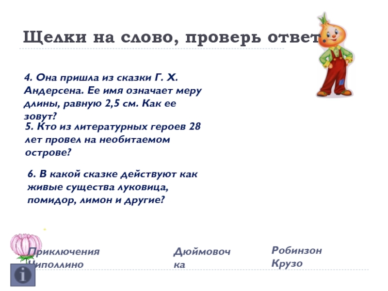 6. В какой сказке действуют как живые существа луковица, помидор, лимон и другие?