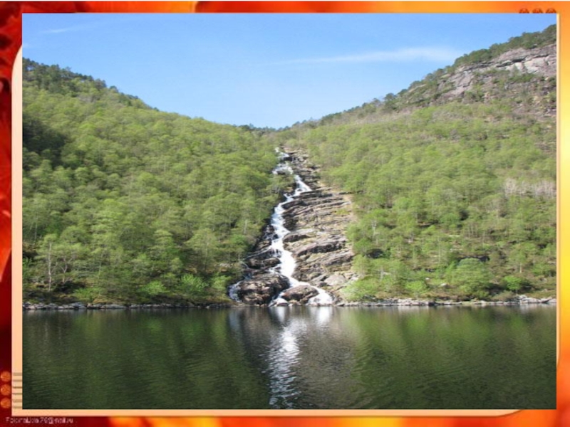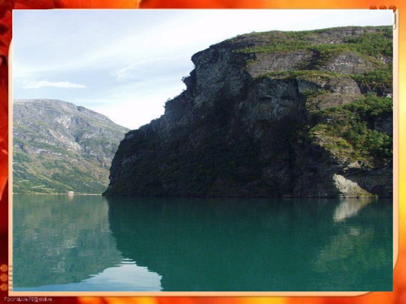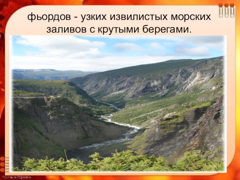 Слайд 13фьордов - узких извилистых морских заливов с крутыми берегами.