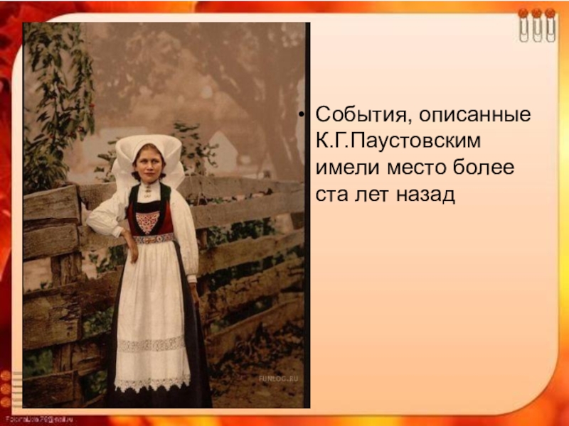 Слайд 22События, описанные К.Г.Паустовским имели место более ста лет назад