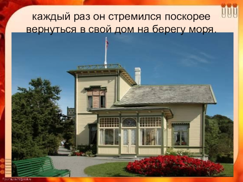 Слайд 17каждый раз он стремился поскорее вернуться в свой дом на берегу