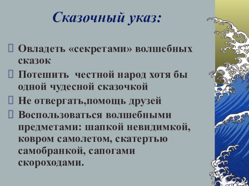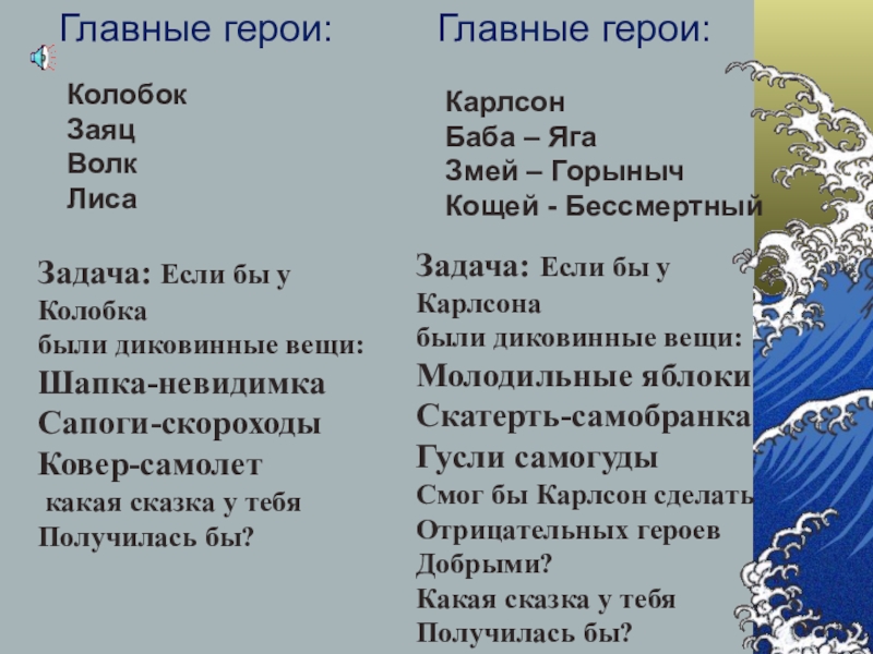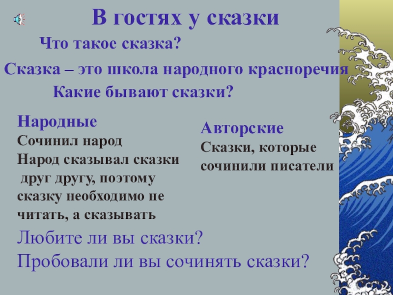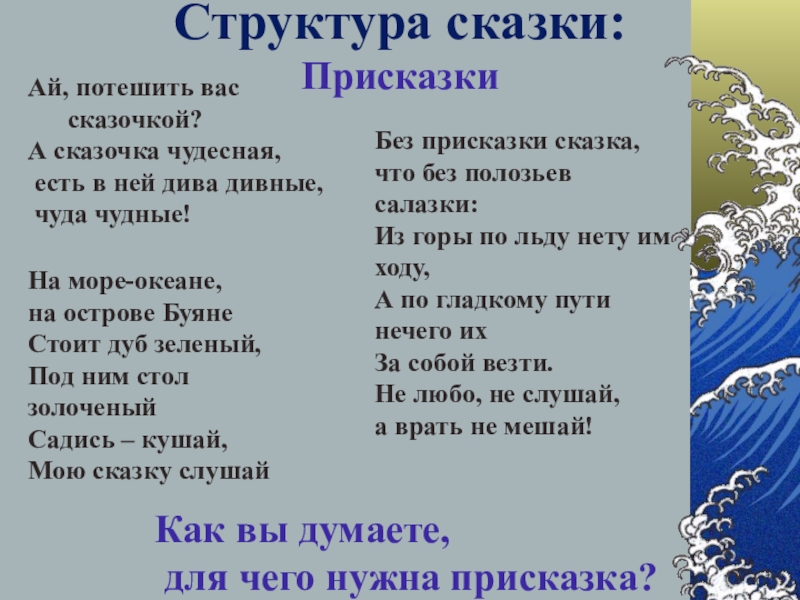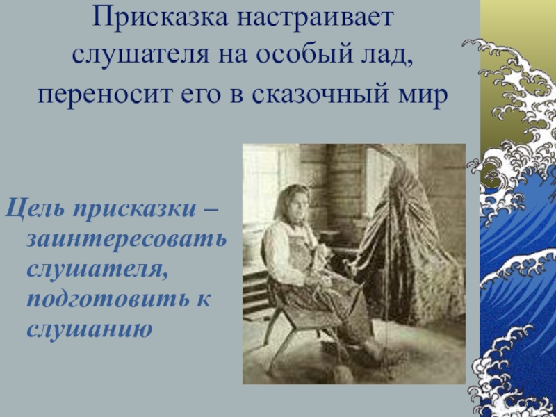 Цель присказки – заинтересовать слушателя, подготовить к слушанию