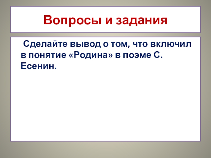 любовью – любовью к Родине. Чувство Родины – основное в моем творчестве» (С. А. Есенин).