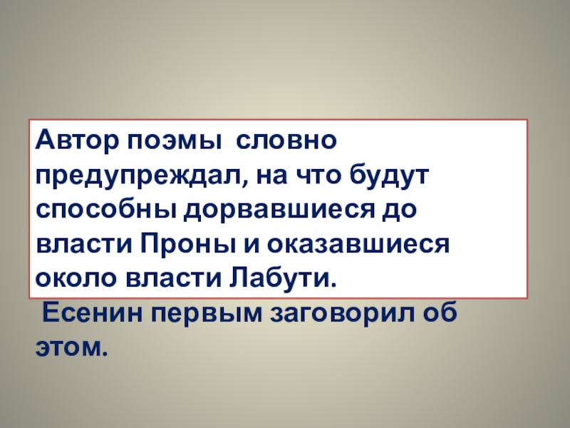 Слайд 29Автор поэмы словно предупреждал, на что будут способны дорвавшиеся до власти