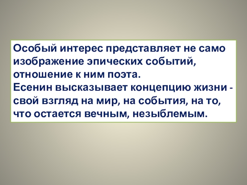 Есенин высказывает концепцию жизни - свой взгляд на мир, на события, на то, что остается вечным, незыблемым.