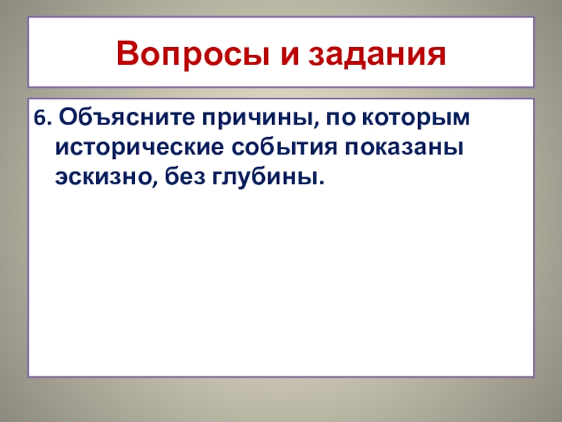 6. Объясните причины, по которым исторические события показаны эскизно,