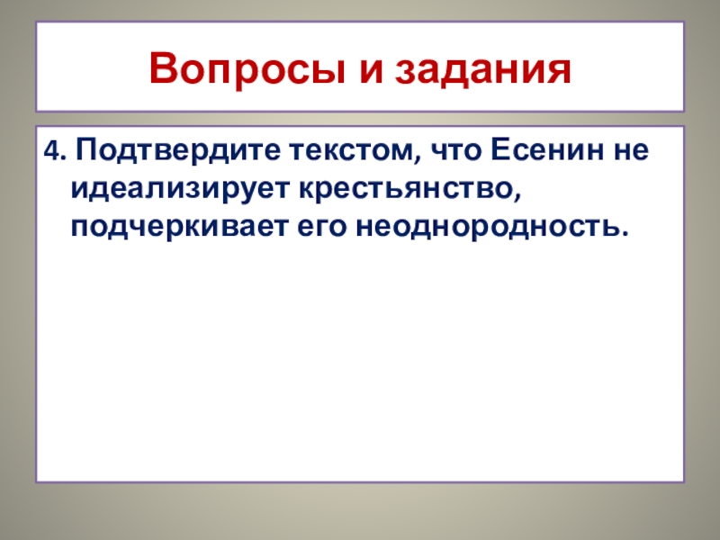 4. Подтвердите текстом, что Есенин не идеализирует крестьянство, подчеркивает