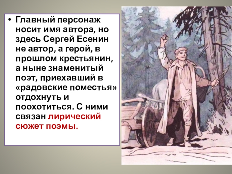 Слайд 8Главный персонаж носит имя автора, но здесь Сергей Есенин не автор,