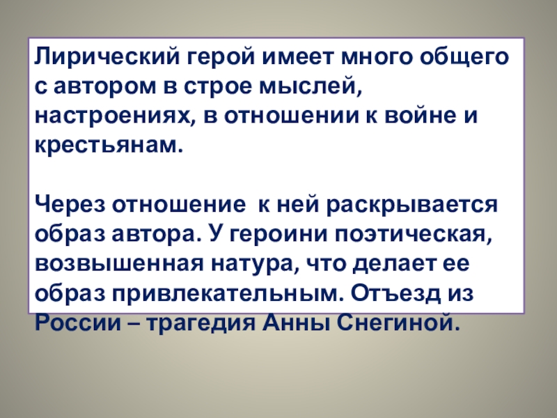 Слайд 33Лирический герой имеет много общего с автором в строе мыслей, настроениях,