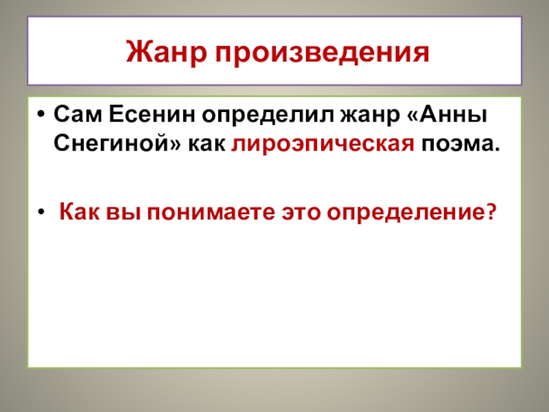 Сам Есенин определил жанр «Анны Снегиной» как лироэпическая
