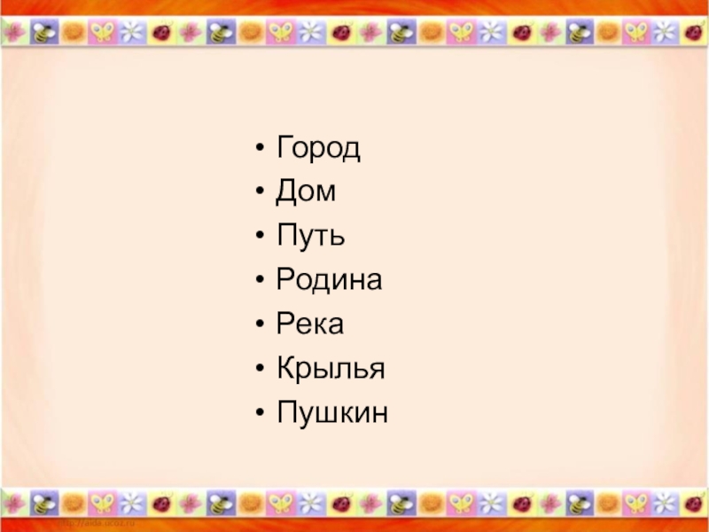 ГородДомПутьРодинаРекаКрыльяПушкин