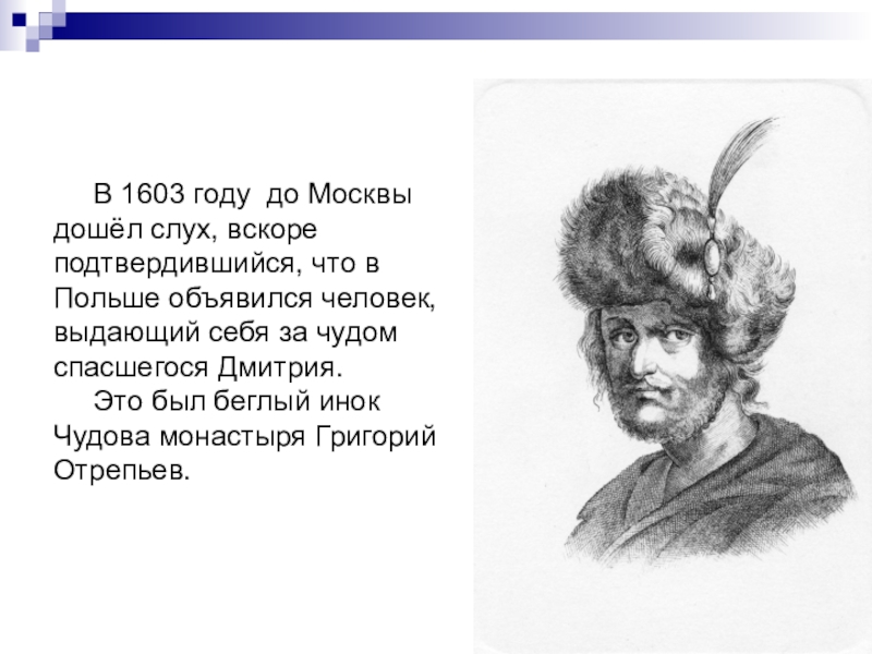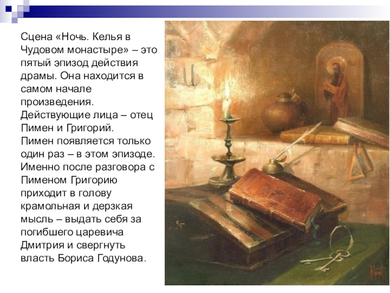 по которой Григорий решил выдать себя за наследника престола, послужили слова Пимена о том, что царевич Димитрий – ровесник Григория.