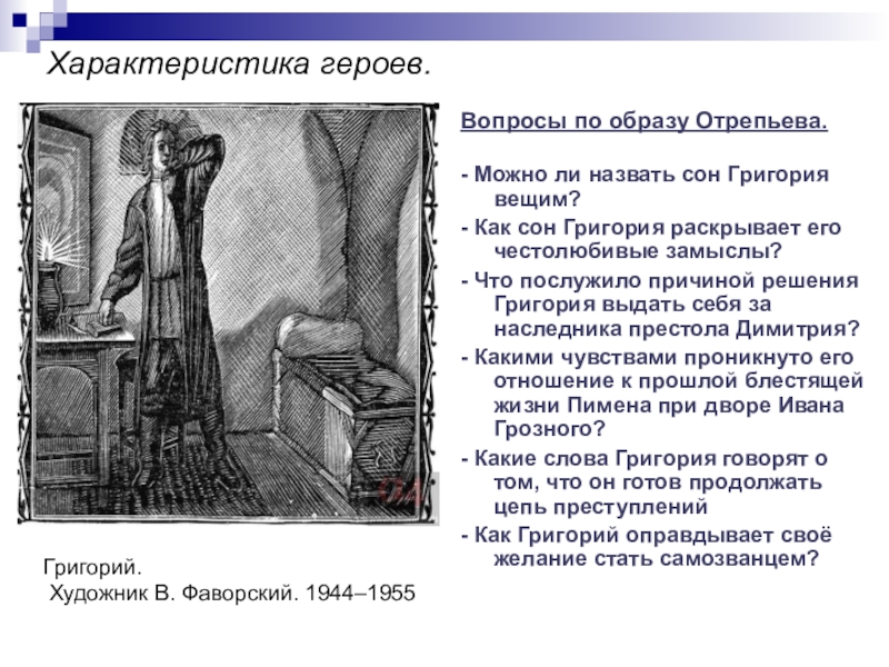 - Как характеризуют Пимена раздумья и размышления Григория?