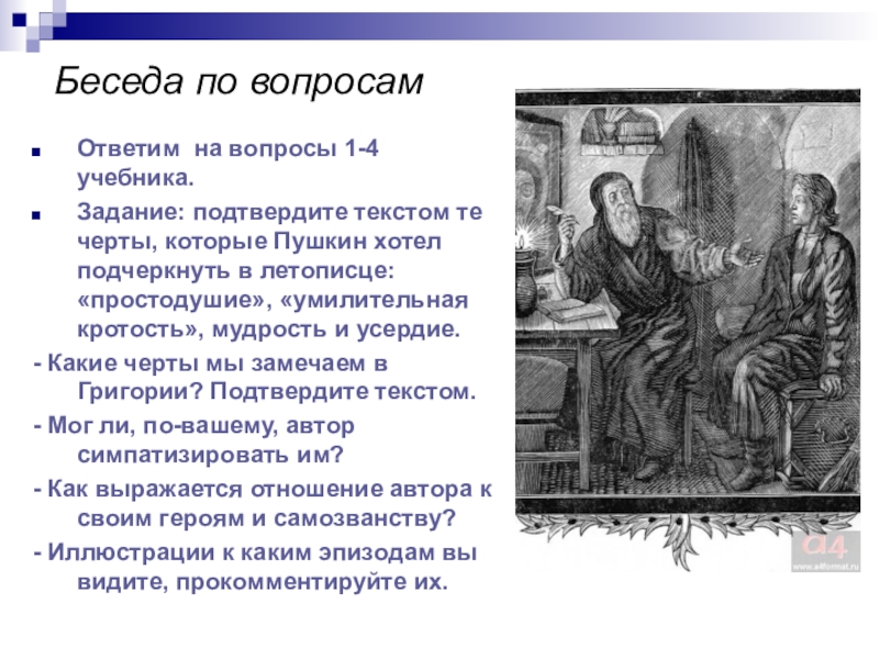 - Прав ли Григорий, сравнивая Пимена с дьяком, который «не ведает ни жалости, ни гнева»?
