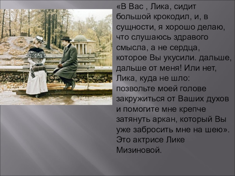 Слайд 7«В Вас , Лика, сидит большой крокодил, и, в сущности, я