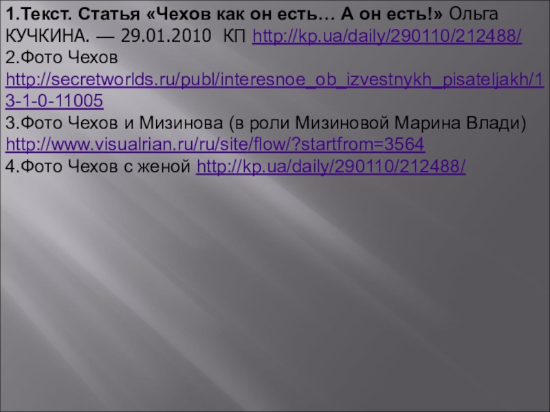 Слайд 111.Текст. Статья «Чехов как он есть… А он есть!» Ольга КУЧКИНА.