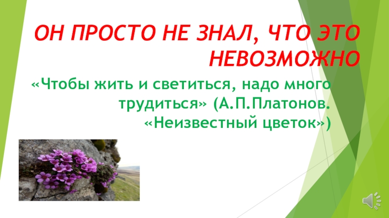 много трудиться» (А.П.Платонов. «Неизвестный цветок»)
