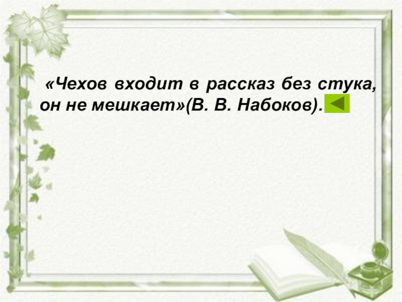 Слайд 8 «Чехов входит в рассказ без стука, он не мешкает»(В. В. Набоков).