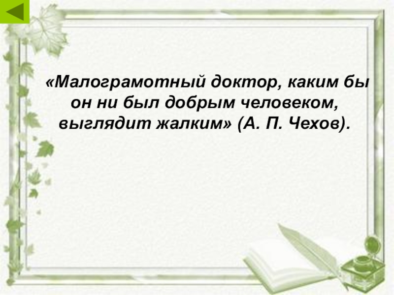 «Малограмотный доктор, каким бы он ни был добрым человеком, выглядит жалким» (А. П. Чехов).