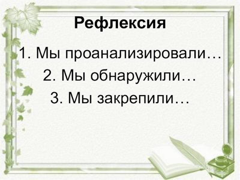 Рефлексия1. Мы проанализировали…2. Мы обнаружили…3. Мы закрепили…