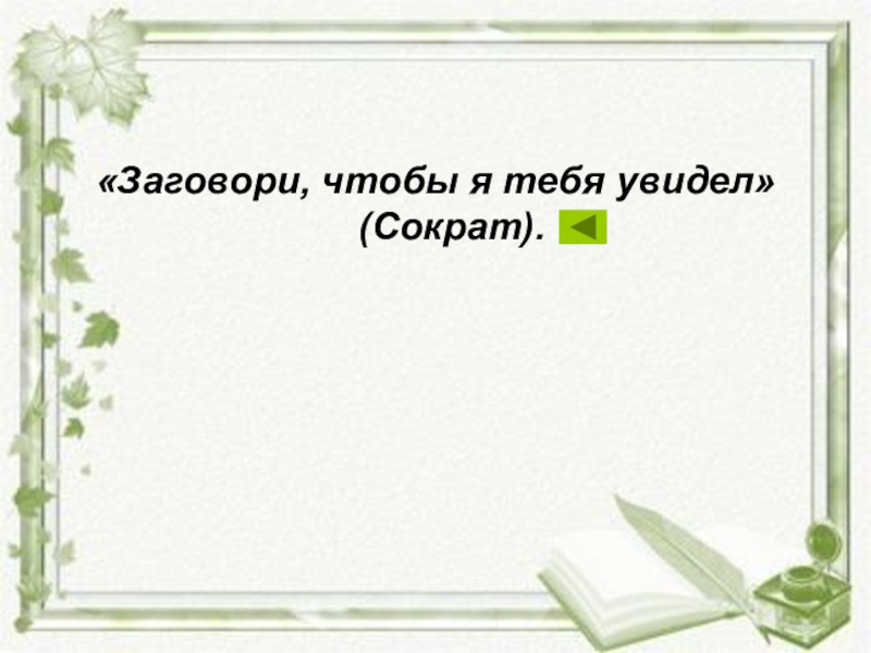 Слайд 9«Заговори, чтобы я тебя увидел» (Сократ).