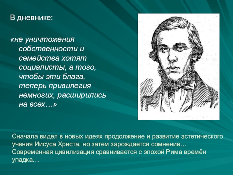 «не уничтожения собственности и семейства хотят социалисты, а того, чтобы эти блага, теперь привилегия немногих, расширились на всех…»