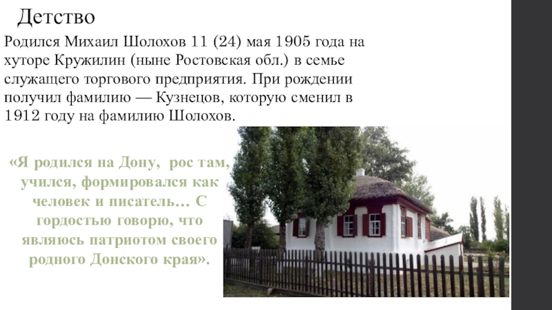 «Я родился на Дону, рос там, учился, формировался как человек и писатель… С гордостью говорю, что являюсь патриотом своего родного Донского края».