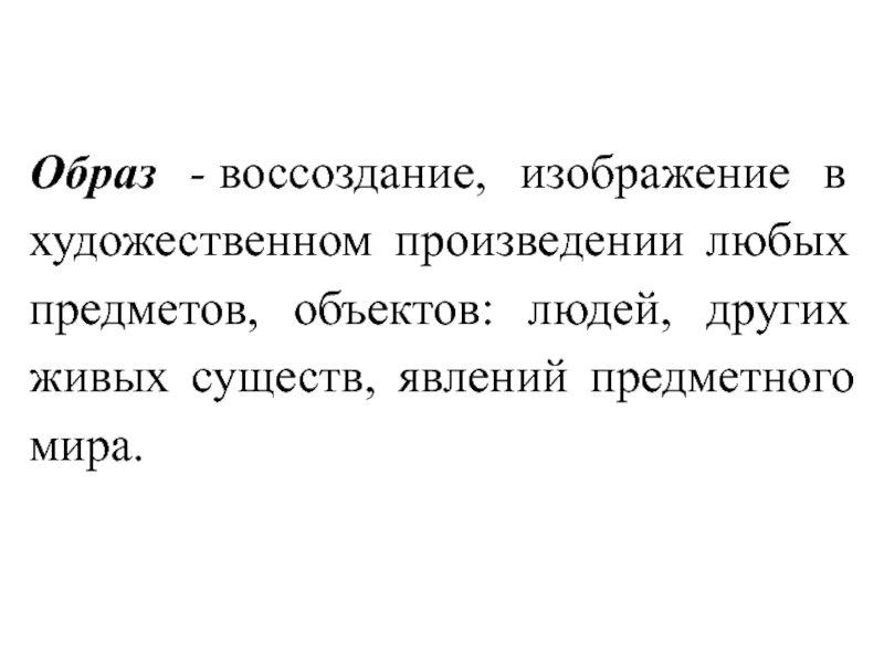 Слайд 4Образ - воссоздание, изображение в художественном произведении любых предметов, объектов: людей, других