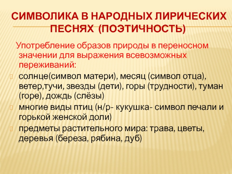 Слайд 16Символика в народных лирических песнях (поэтичность)