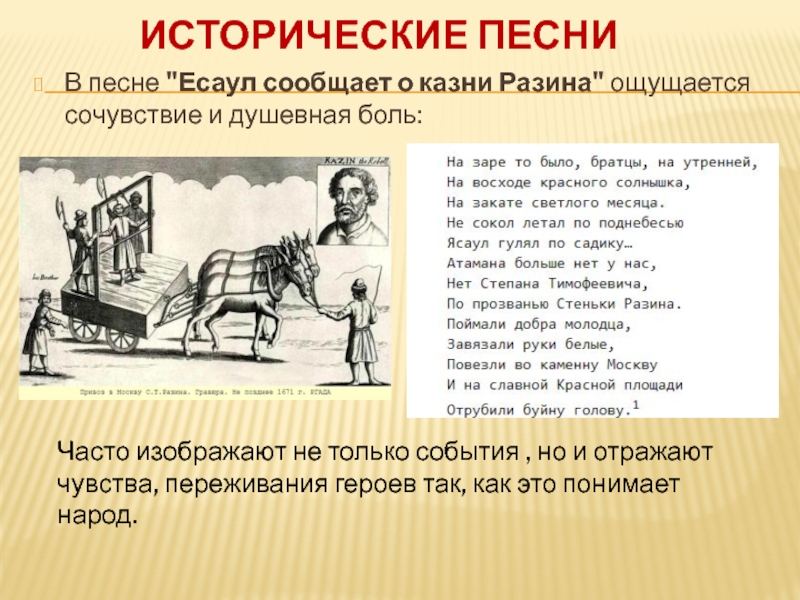 В песне "Есаул сообщает о казни Разина" ощущается сочувствие и душевная боль: