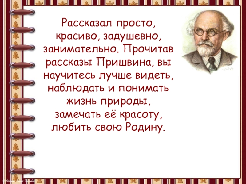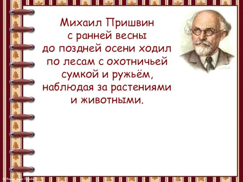 Рассмотрите иллюстрацию к тексту. Что же делает Пришвин?