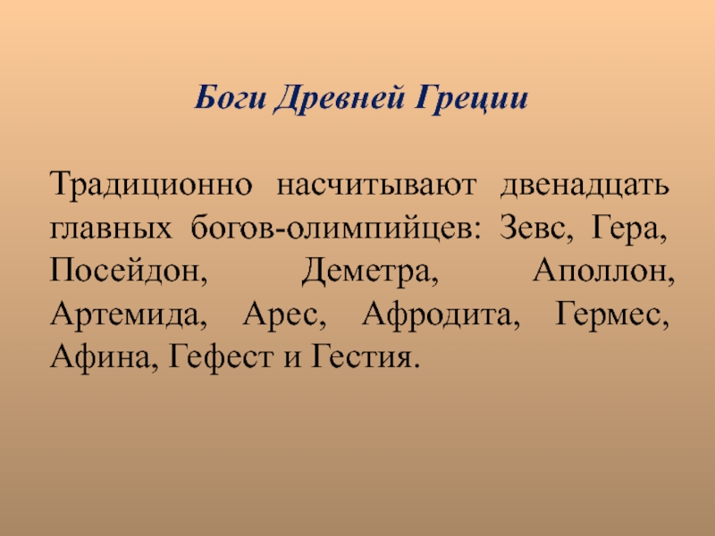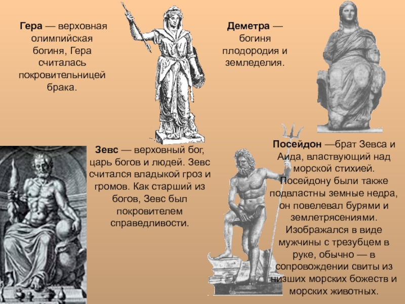 Зевс — верховный бог, царь богов и людей. Зевс считался владыкой гроз и громов. Как старший из богов, Зевс был покровителем справедливости.