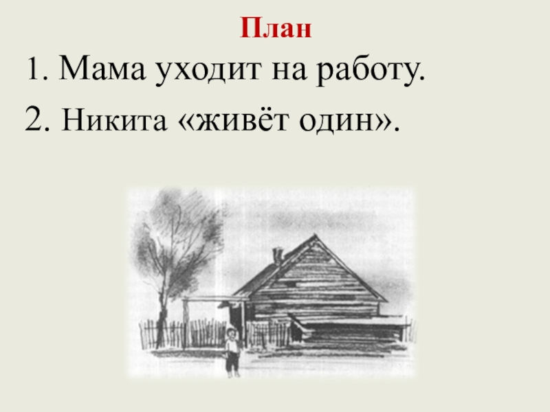 План 1. Мама уходит на работу.2. Никита «живёт один».