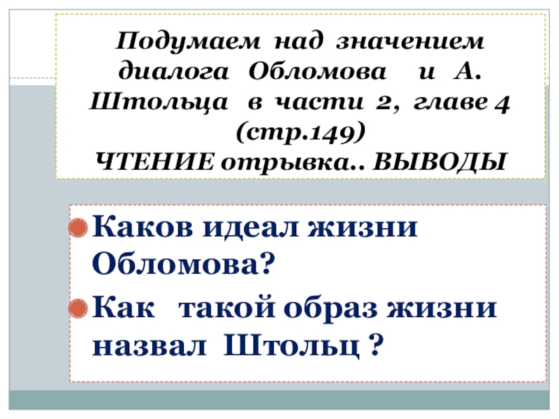 Слайд 3Подумаем над значением диалога Обломова и А.Штольца
