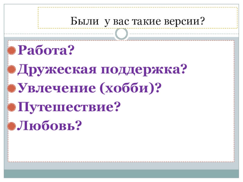 вариантами ответов , но каждая пара должна дать лишь одну версию ответа. Мы их по очереди запишем: