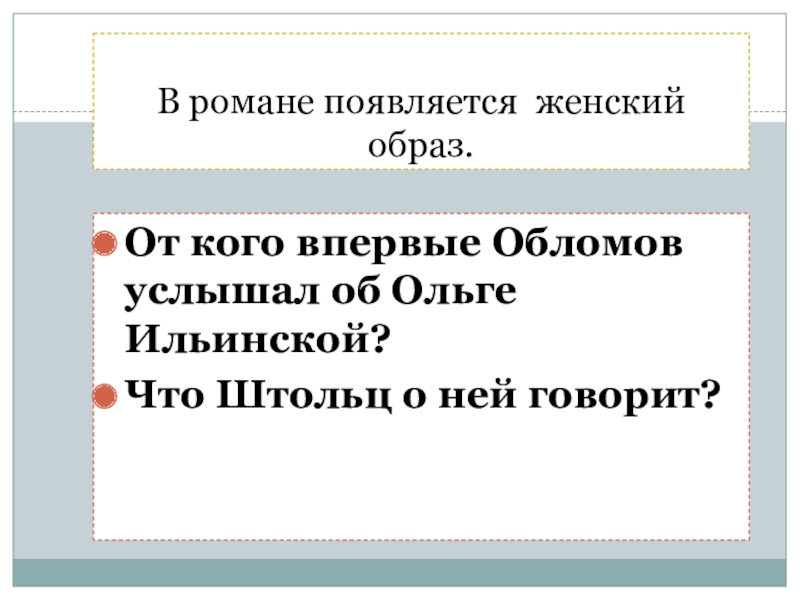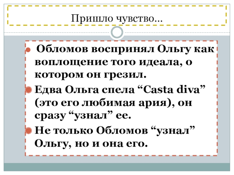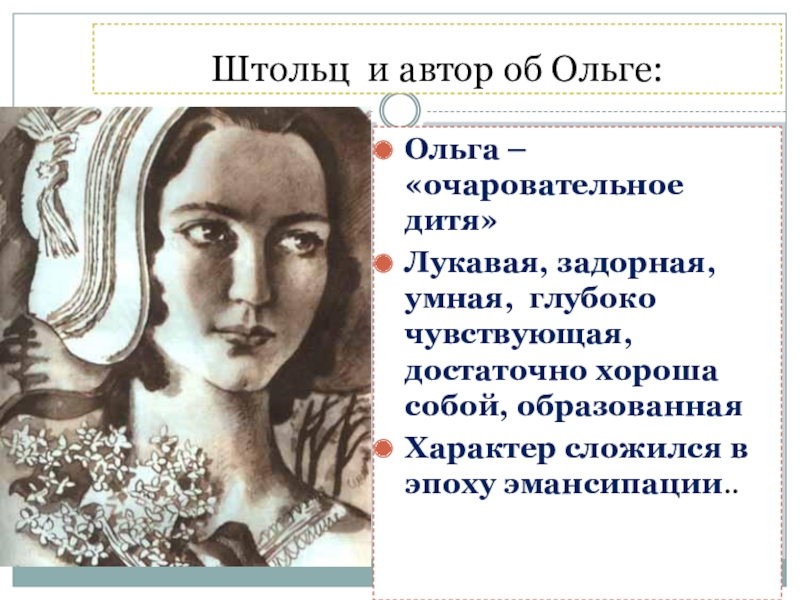 Обломов воспринял Ольгу как воплощение того идеала, о котором