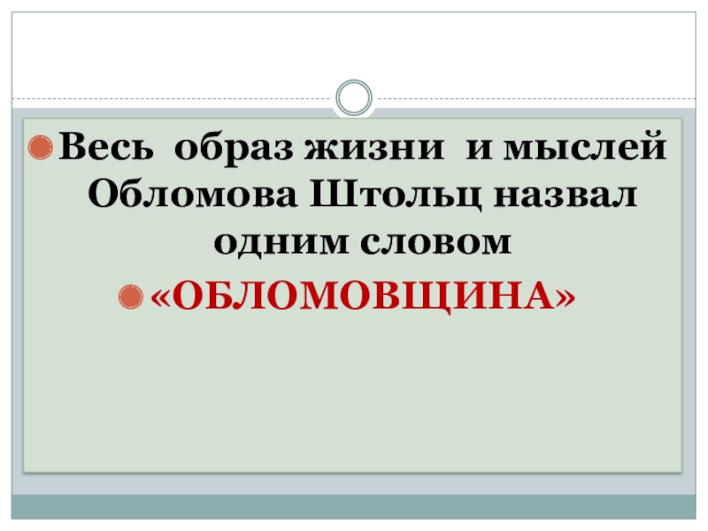 Слайд 4Весь образ жизни и мыслей Обломова Штольц назвал одним словом