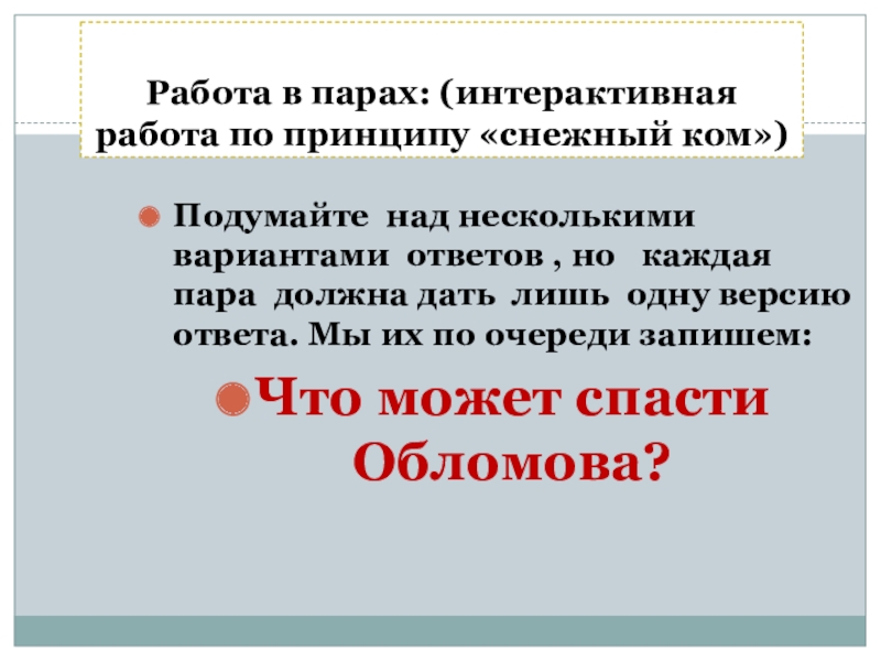 Слайд 10Работа в парах: (интерактивная работа по принципу «снежный ком»)