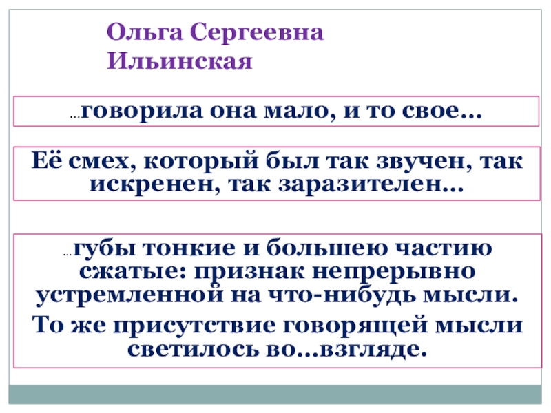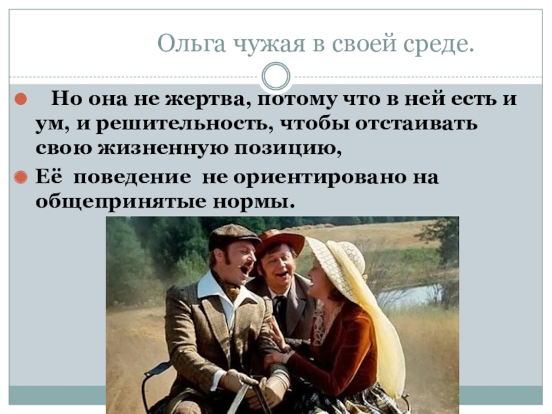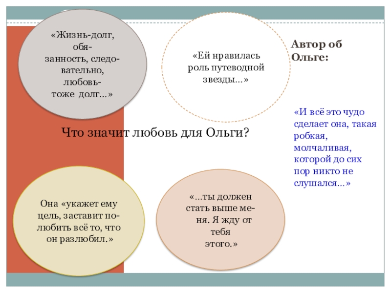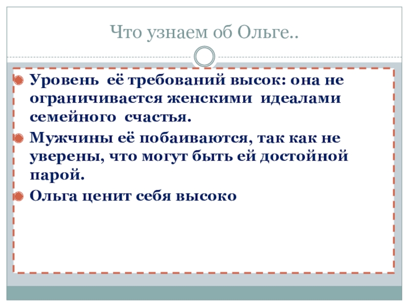 5. Ольга изменилась! В гостях у тётки Ольги. “Она сошла — и он надивиться не мог, глядя на неё; он едва узнал её. У ней другое лицо, даже другой голос… Куда всё вдруг делось?”